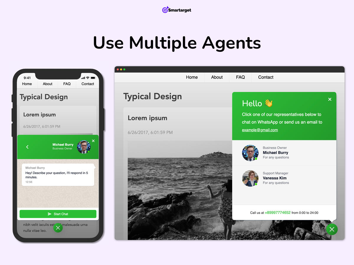اعرض وكيلاً واحداً أو عدة وكلاء، مما يسهل على العملاء التواصل مع الشخص المناسب في شركتك.