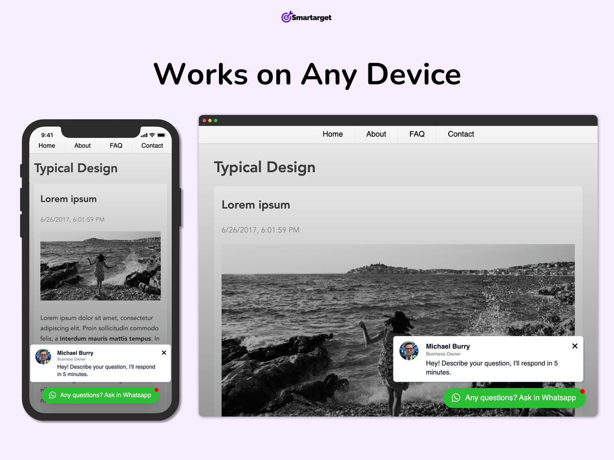 زر دردشة Whatsup ل Kajabi متوافق تمامًا مع جميع الأجهزة، بما في ذلك أجهزة الكمبيوتر المكتبية والمحمولة